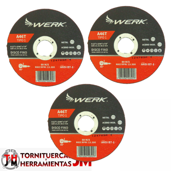 Material y tamaño: Este disco delgado tiene un diámetro de 4.1/2 pulgadas, un espesor de 1.2 milímetros y un orificio central de 22 milímetros. Está fabricado con grano abrasivo de óxido de aluminio (código A46T) diseñado específicamente para cortar metales y acero inoxidable.