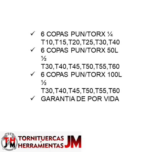 • Es importante destacar que estas copas no deben ser utilizadas en herramientas de potencia o de impacto