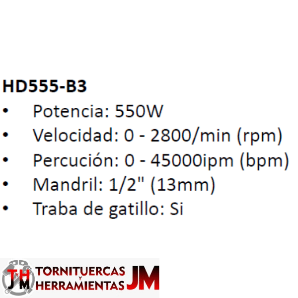 TALADRO PERCUTOR 1/2″ (HD500-B3) HD555-B3 BLACK AND DECKER